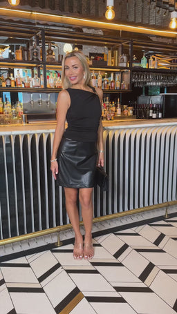 Add a touch of modern sophistication to your wardrobe with our Black Faux Leather Mini Skirt. Featuring our premium faux leather material and a zip-up back. Wear this mini with a cute jumper and knee high boots for a sleek, put together look.