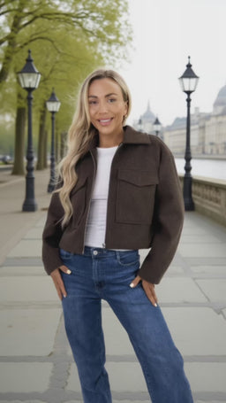 Take your outfit to the next level with our Chocolate Marl Zip Up Pocket Detail Boxy Jacket. Featuring a wool-look material with lining, a cropped boxy silhouette, a classic collar, long sleeves, a zip-up front and large pockets at the front. Ideal for in-between-seasons and warmer winter days - just pair it with a nice top, jeans and boots to elevate a casual outfit.