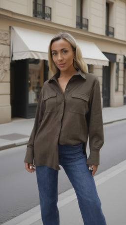 Our Khaki Faux Suede Long Sleeve Utility Shirt is the perfect addition to your Autumn/Winter wardrobe. Made from our soft faux suede, this shirt features a classic shirt collar, a button up front, chest flap pockets and long cuffed sleeves. Wear it with jeans and boots for a casual daytime look, or style it with leather-looks and heels for a sleek evening outfit.