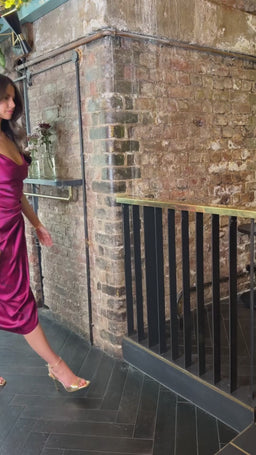 Magenta Marble Print Strappy Cowl Neck Gathered Skirt Midi Dress