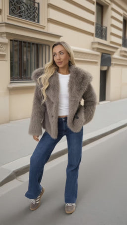 Mink Faux Fur Shawl Collar Buckle Detail Jacket