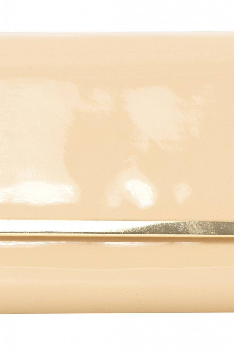 this gorgeous patent bag Featuring gold plated edging, this
