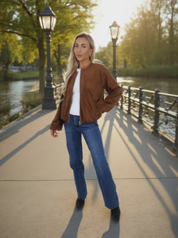Tan Faux Suede Bubble Hem Bomber Jacket
