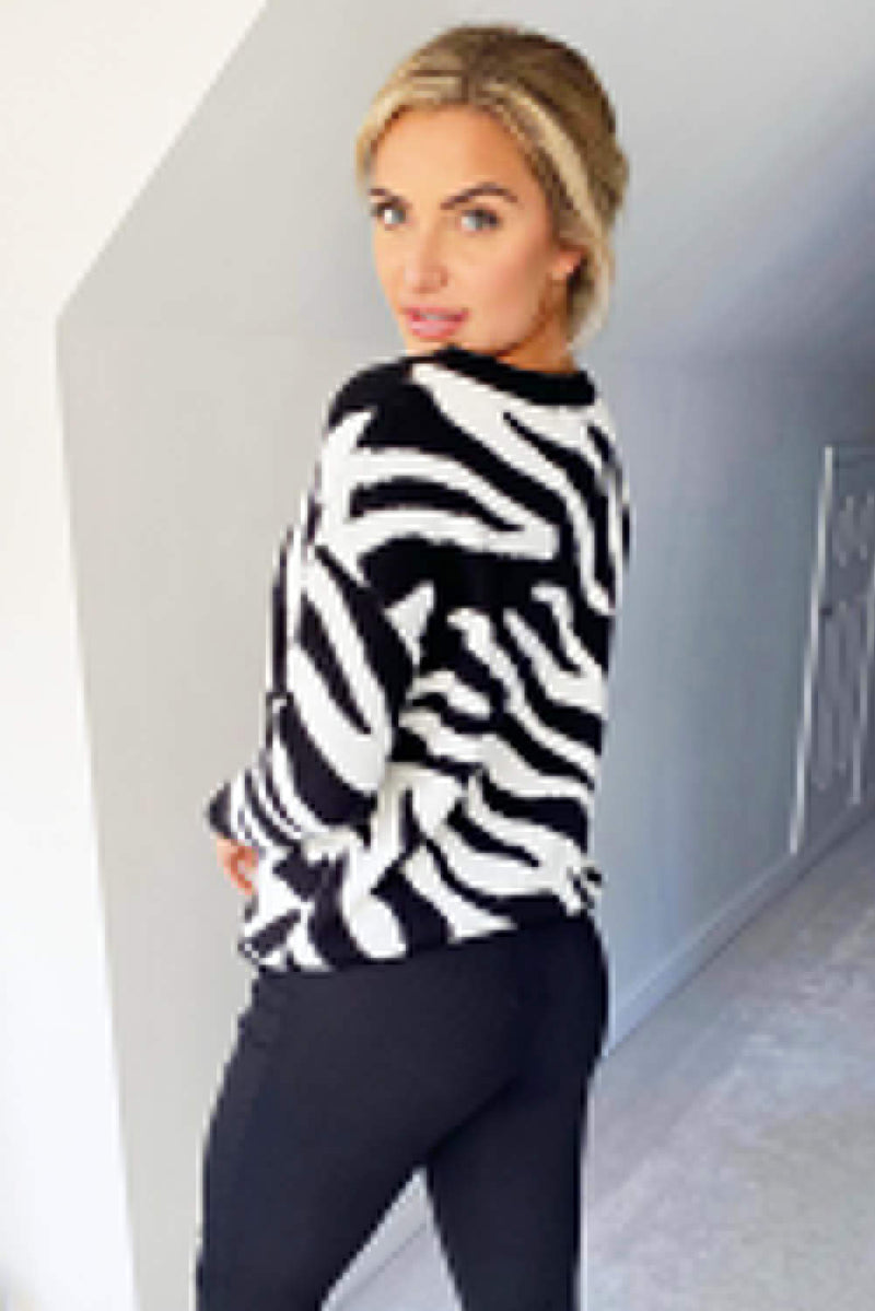 Our Black And White Zebra Knitted Jumper is ideal for your new season wardrobe! Pair with black leather look pants and all the right accessories.